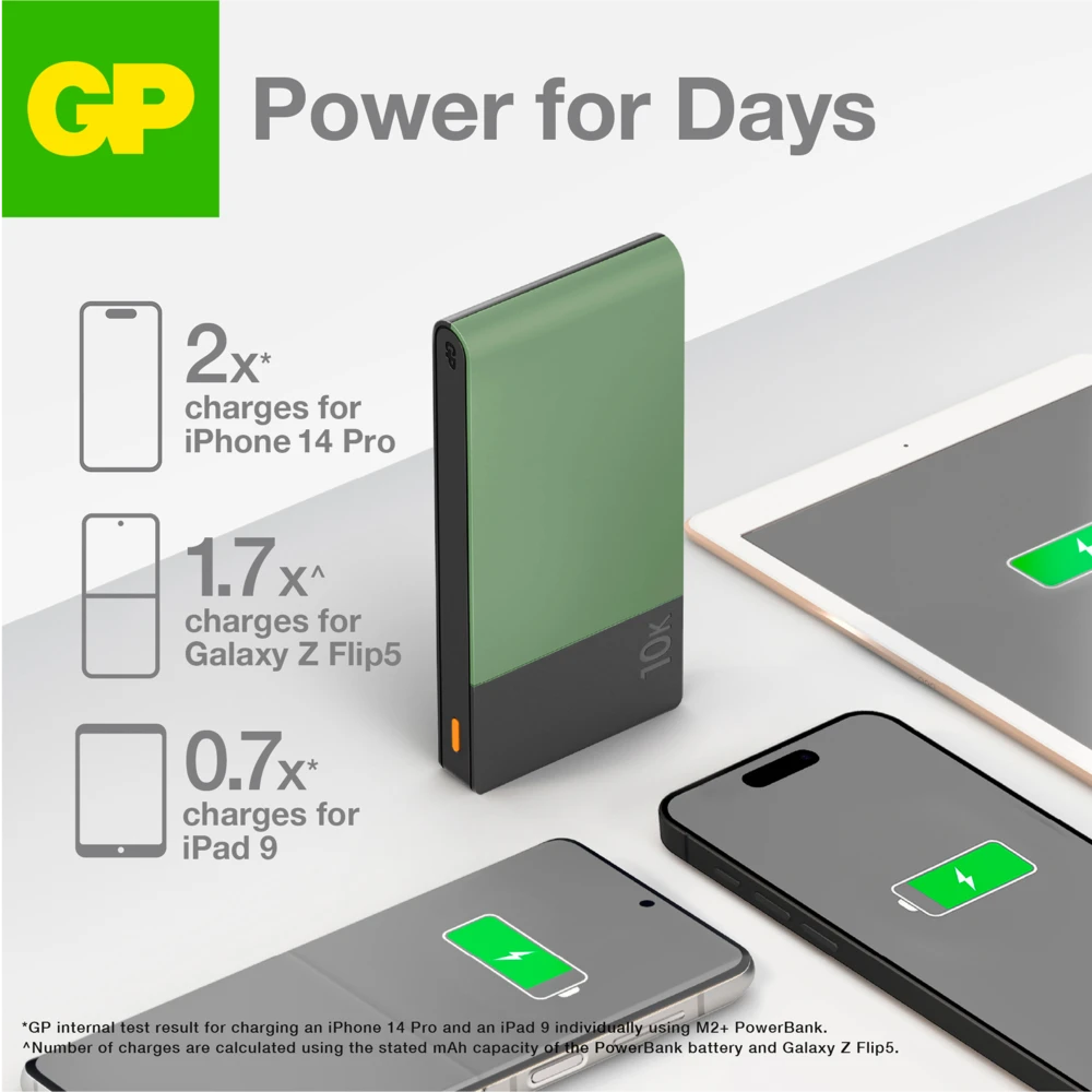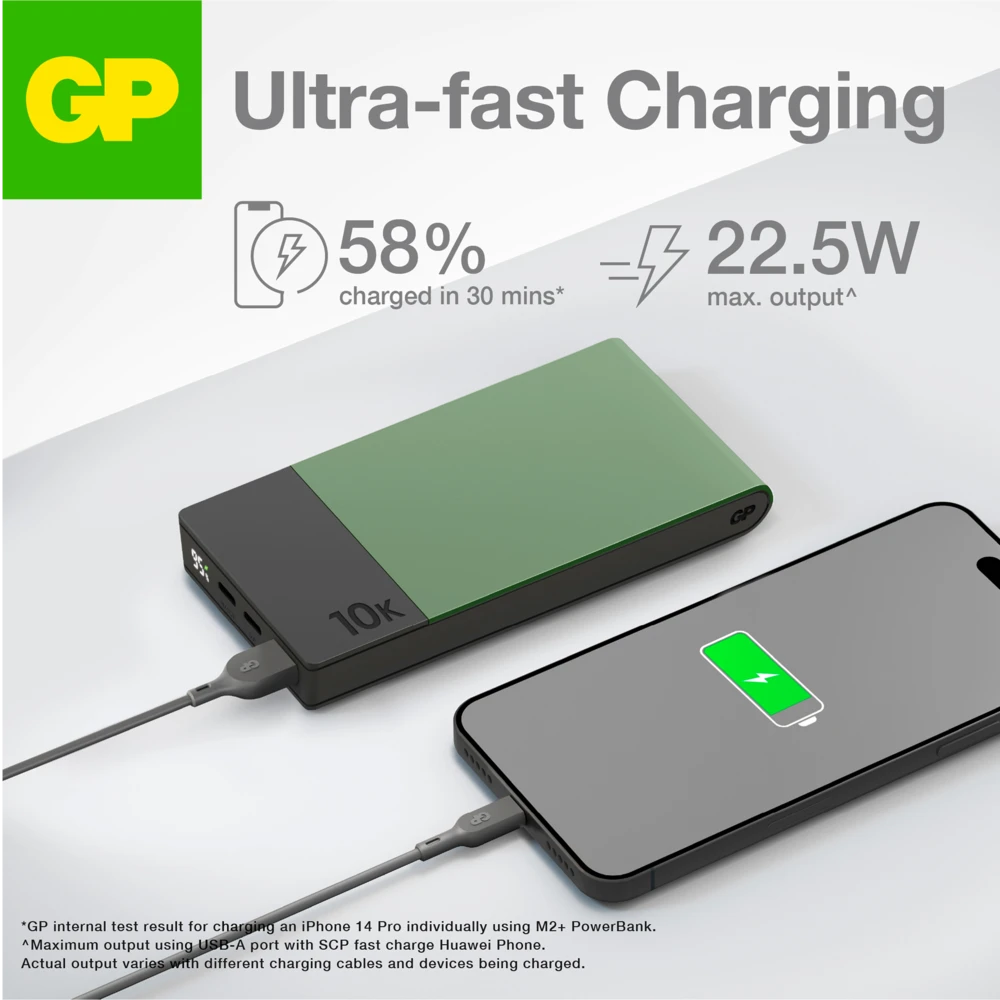 *GP internal test result for charging an iPhone 14 Pro with M2+ PowerBank.