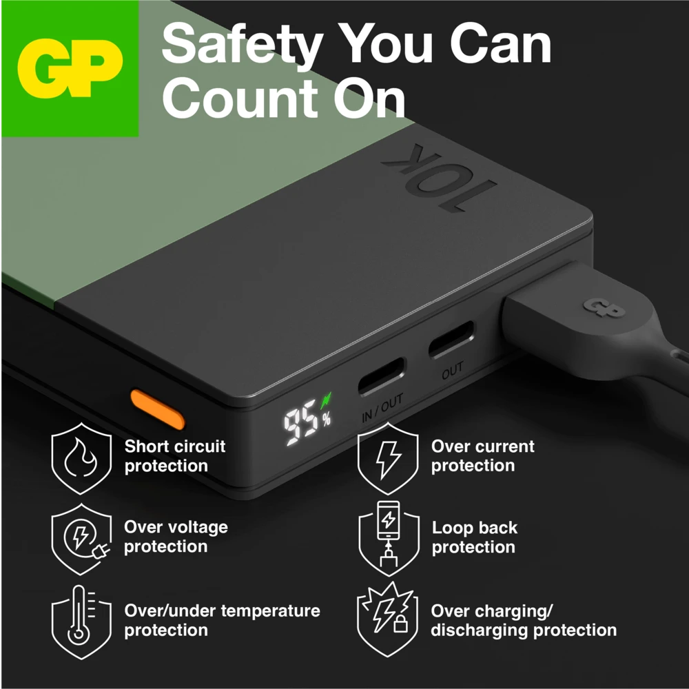 The six built-in safety protections are made for hassle-free charging. They make sure your devices charge safely and protect them from loopbacks, overcharging and discharging, short circuits, overloaded inputs and outputs, overheating, low temperatures and other potential hazards.