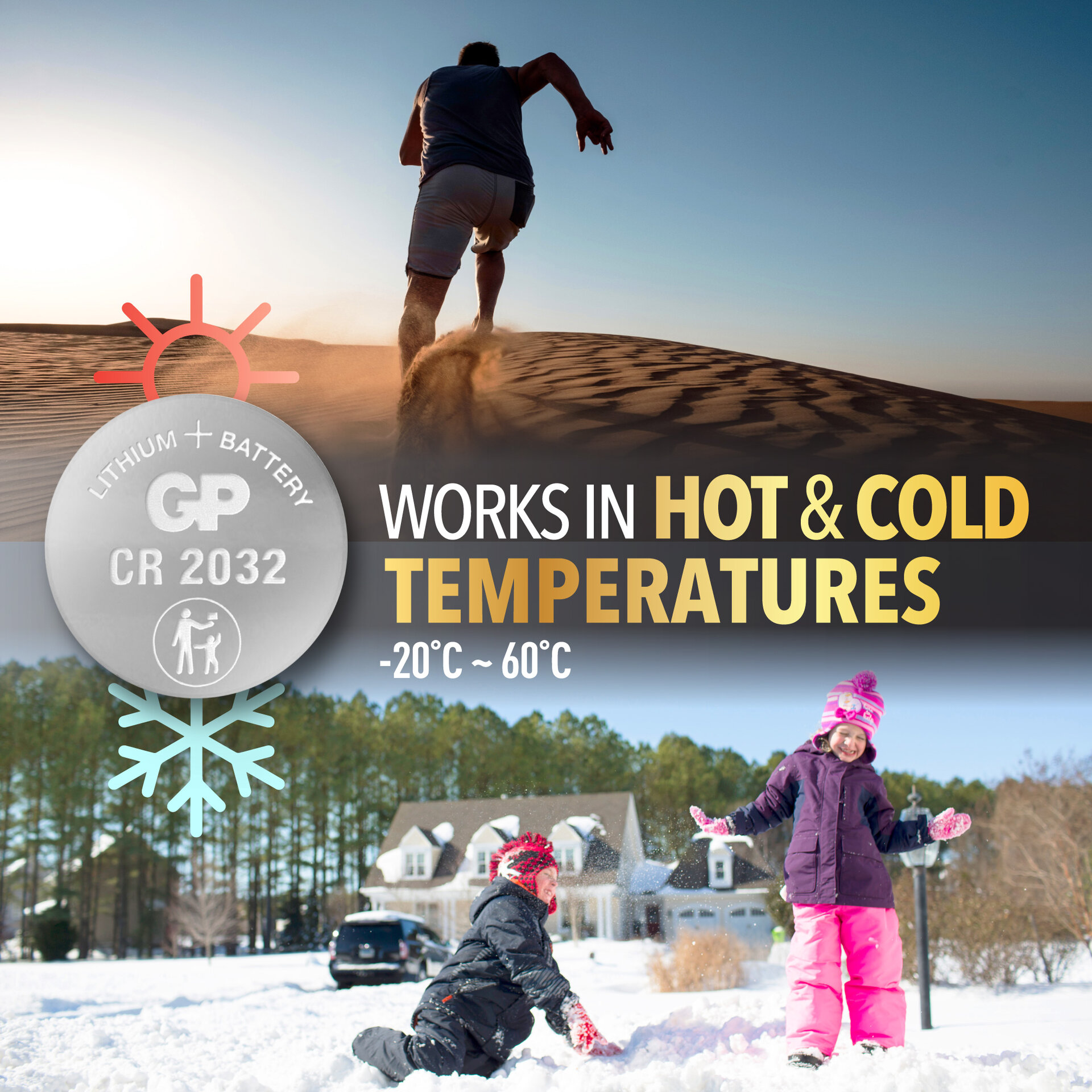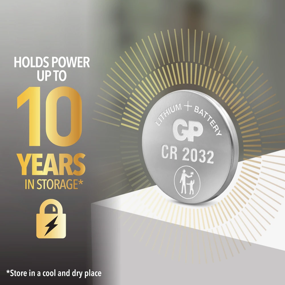 GP's high-performance CR2032 lithium batteries have high energy density and can deliver 30% more power* to your miniature special devices, such as car keys, remote controls, smart watches, blood glucose meters, smart home equipment, IoT devices, door and window sensors. With remarkable energy-carrying properties and a shelf life of up to 10 years when stored properly in a cool, dry place, you'll never be caught with dead batteries. They are designed to work even in extreme conditions and operate reliably from -20°C to +60°C. Safety comes first – these batteries are not only designed to protect your gadgets with a leak-proof design, but also to protect your loved ones with carefully designed child-proof packaging.