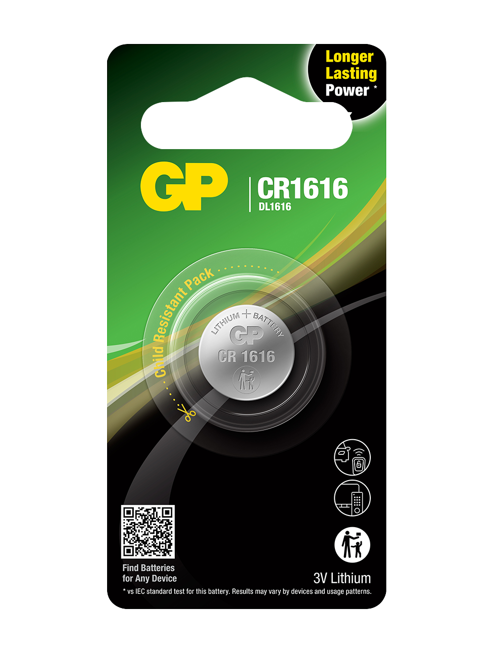 Long-lasting power – GP Lithium button cell batteries CR1616 are designed to deliver consistent and reliable energy for both high-drain applications and everyday devices. Built for durability, GP Lithium button cells provide long-lasting performance you can trust, ensuring your devices are always ready to use.