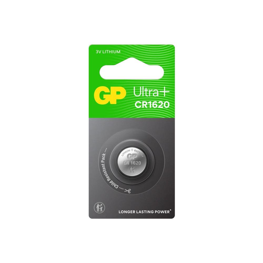GP Ultra Plus Lithium button cell battery CR1620 deliver long-lasting power and energy you can rely on.