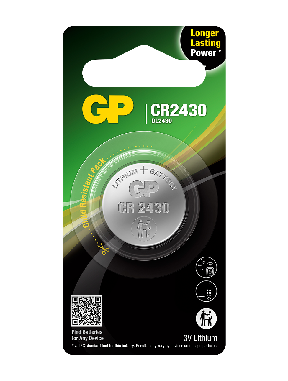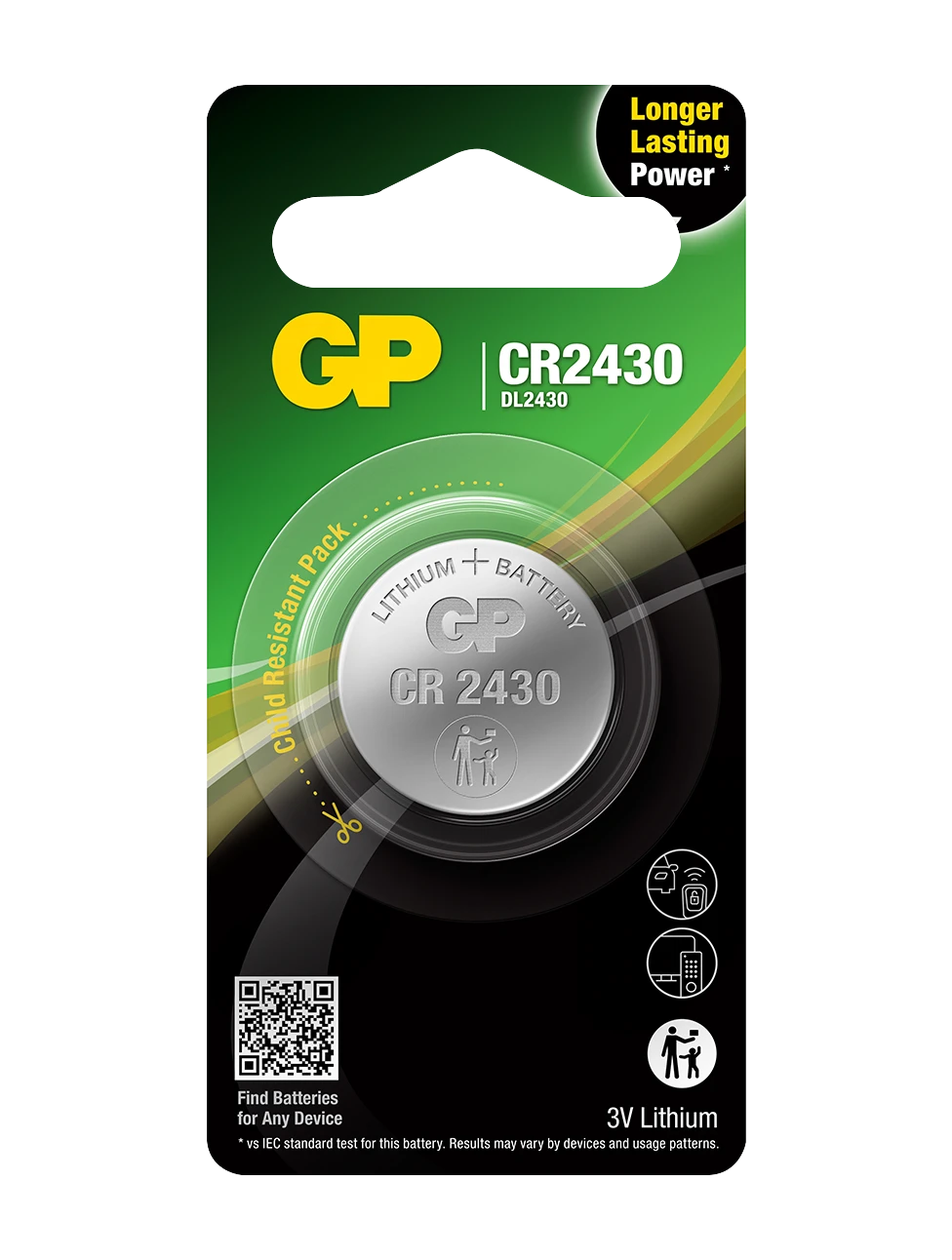 GP Ultra Plus Lithium button cell batteries CR2430 deliver reliable power and offer up to 30% longer lifespan.* Specifically optimized for car keys, these batteries ensure dependable performance and long unlocking range. Advanced sealing minimizes self-discharge and prevents leakage. Built for durability, operates in temperatures from -20 °C to +60 °C. The child-resistant packaging provides extra safety, especially at home.