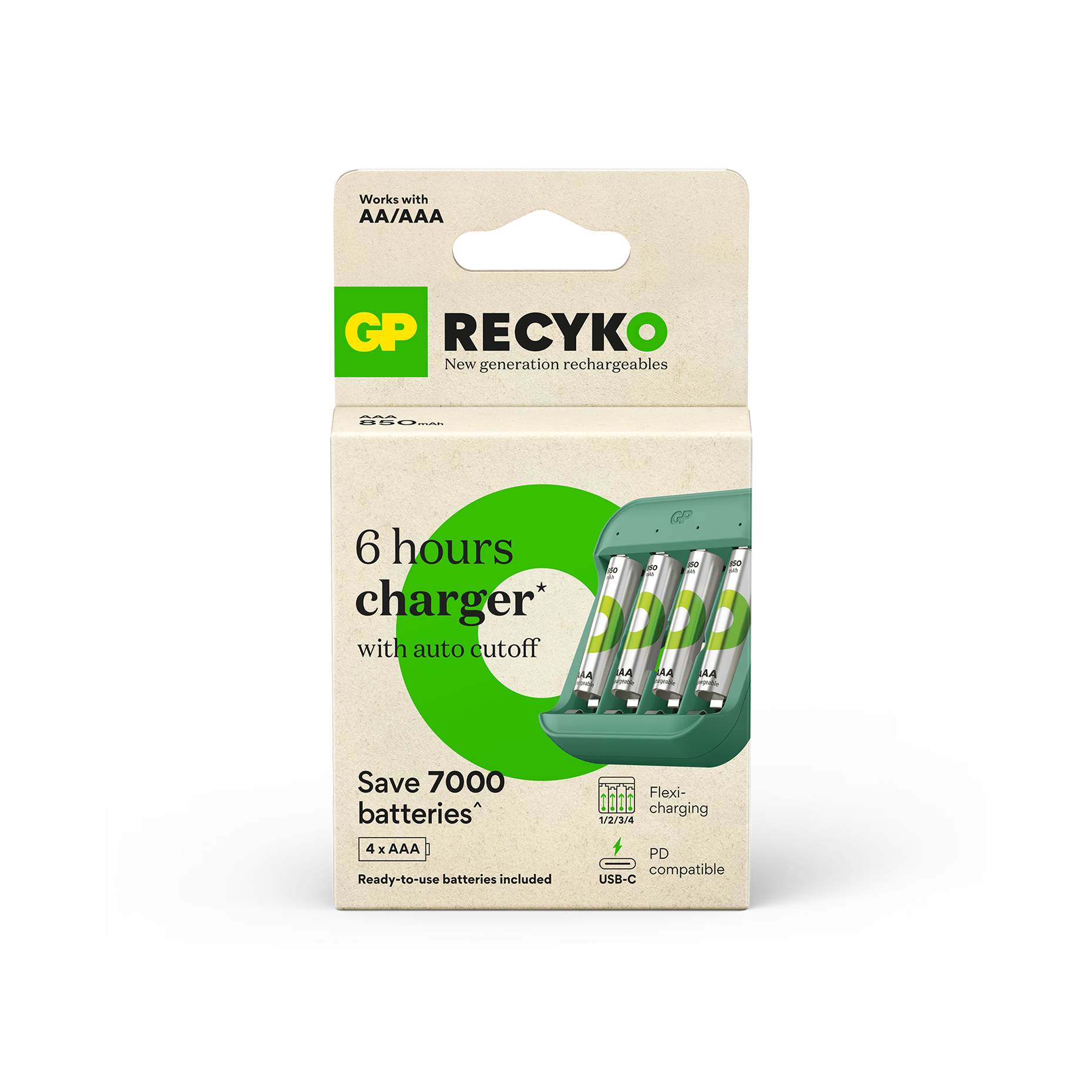 Recharge in 6 hours – The intelligent power supply delivers a fast charge in only 6 hours for 1 to 4 AA/AAA rechargeable batteries with a USB-C input.