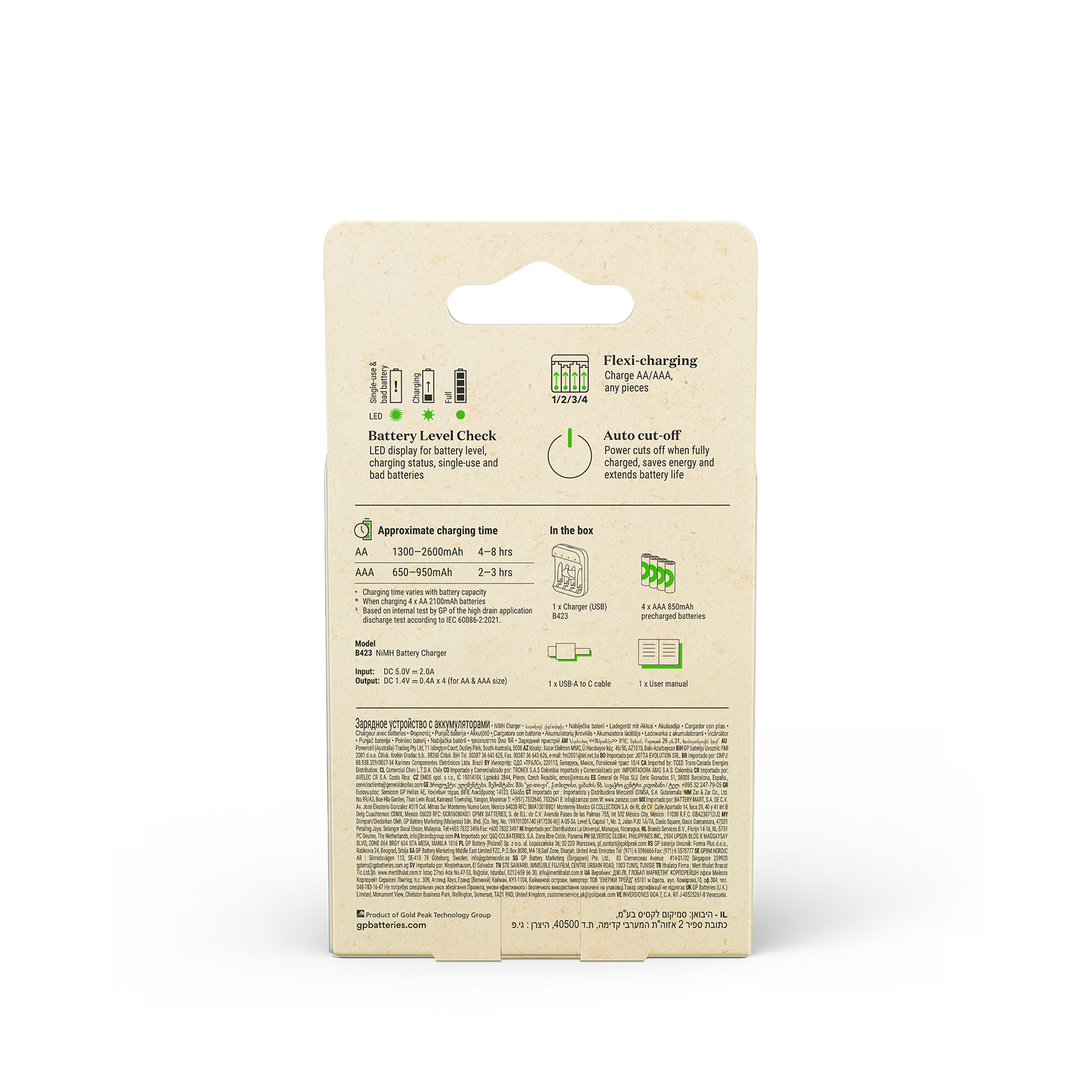 GP Recyko battery charger B423 incl. 4pcs AAA 850mAh NiMH-batteries