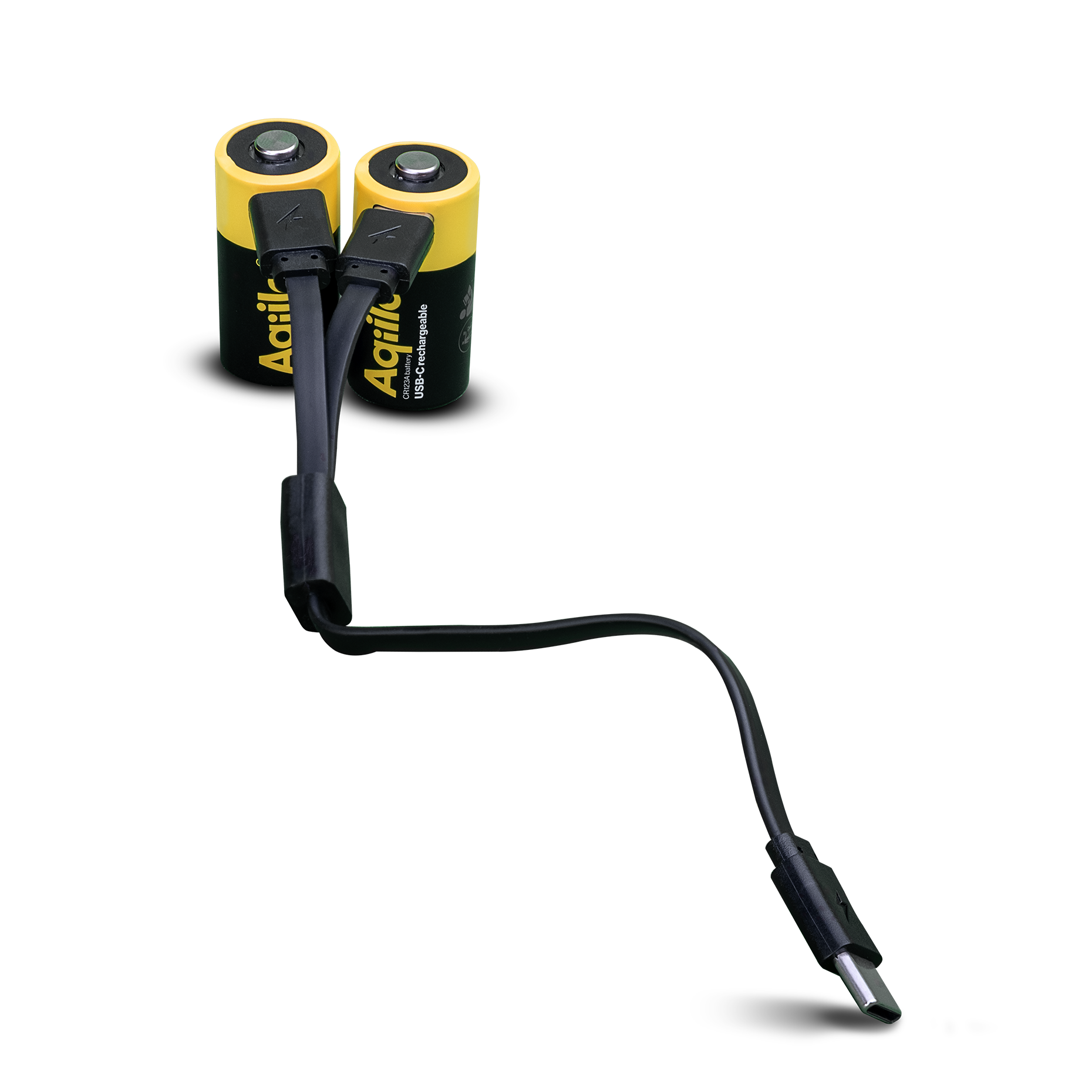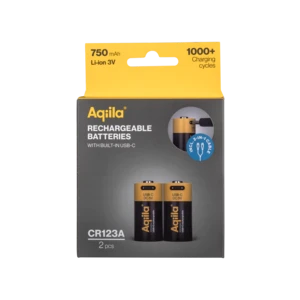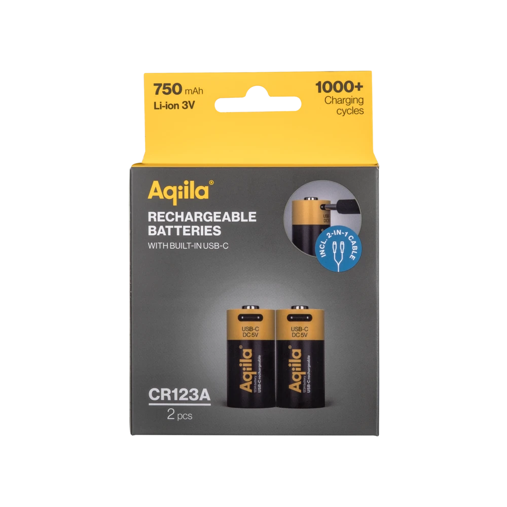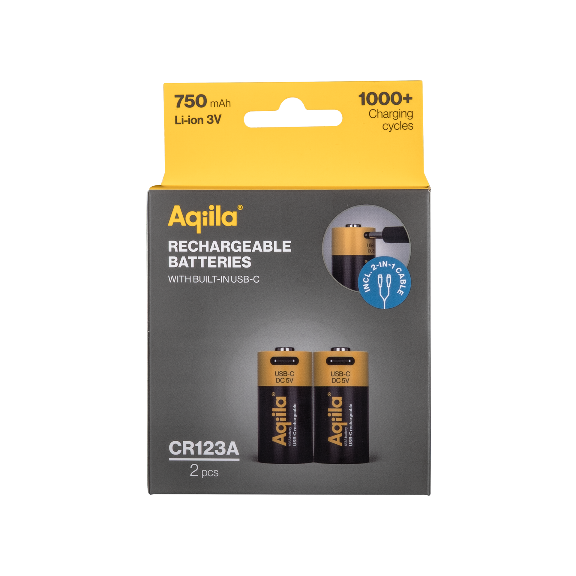 Aqiila Rechargeable USB-C battery – CR123A – 3V / 750mAh (2 psc)