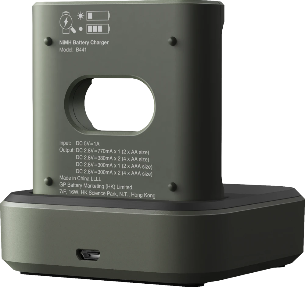 The B441 charges four 2100mAh AA batteries or four 850mAh AAA batteries in six hours using USB. You can see the charging process via the LEDs that show the charging status and whether any disposable or bad batteries have been inserted into the charger. Another safety feature is the -dV full charge monitoring which switches off the charger when the batteries are fully charged. This prevents overcharging, overcurrent and short circuits, and improves battery life.