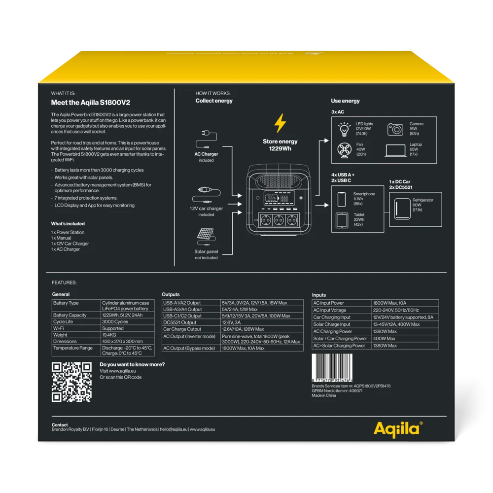 A step up in power for bigger tasks. The Powerbird 1800V2 handles fridges, tools, and multiple devices at once. Ideal for longer trips, backup at home, or mobile work setups.