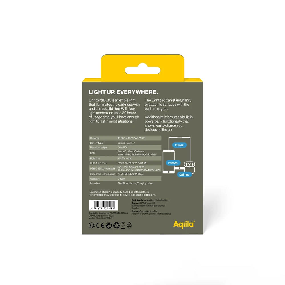 Lightbird BL10 is a flexible light that illuminates the darkness with endless possibilities. With four light modes and up to 30 hours of usage time, you’ll have enough light to last in most situations. The Lightbird can stand, hang, or attach to surfaces with the built-in magnet.But the Lightbird BL10 offers more than just light. With its integrated power bank functionality, you can conveniently charge your devices on the go, ensuring you stay connected wherever your adventures take you.