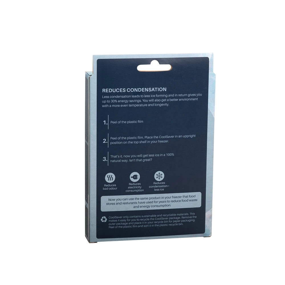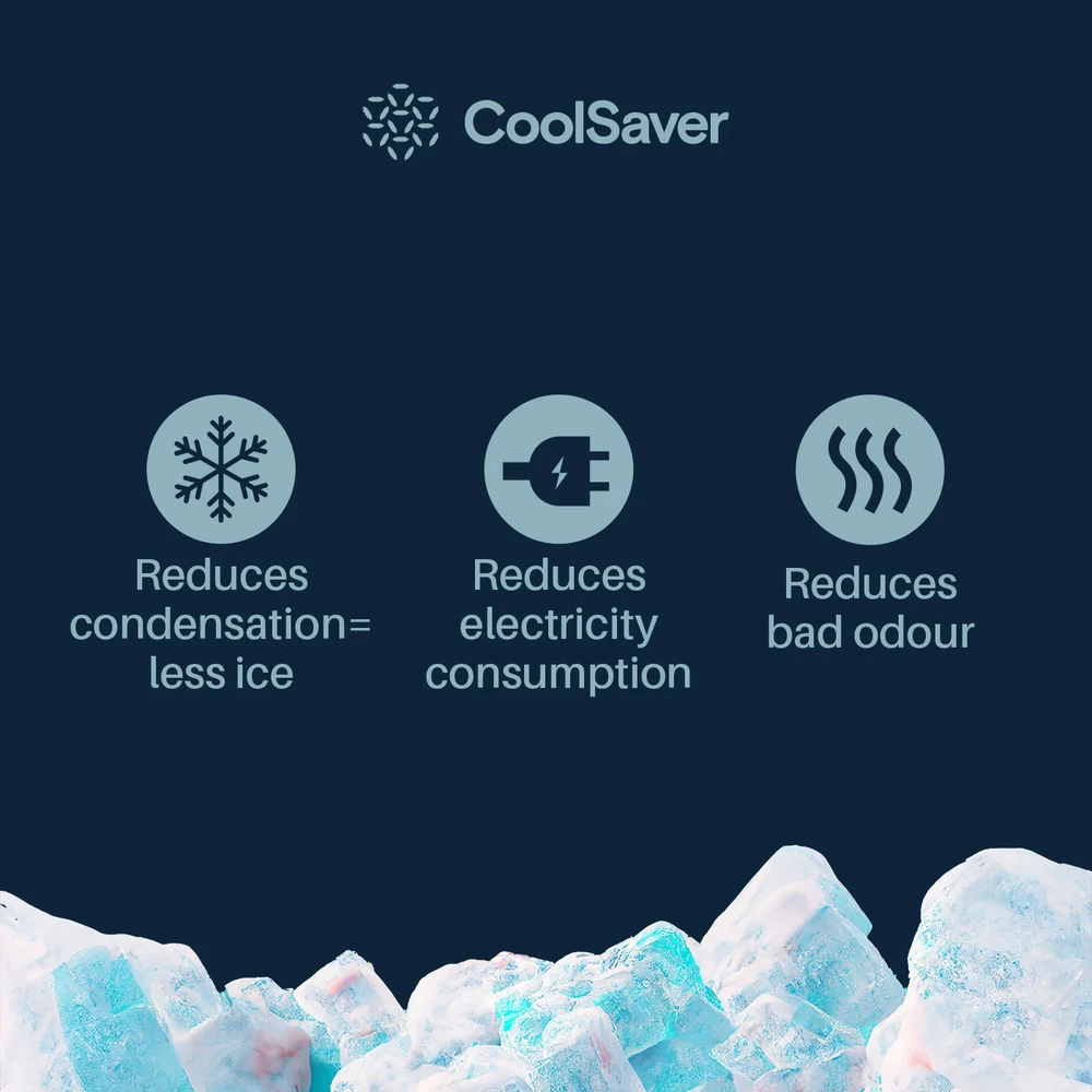 Place the CoolSaver in your freezer and you will get less condensation that leads to less ice forming, and in return gives you up to 30% energy savings. You will also get a better environment with a more even temperature and longevity.
