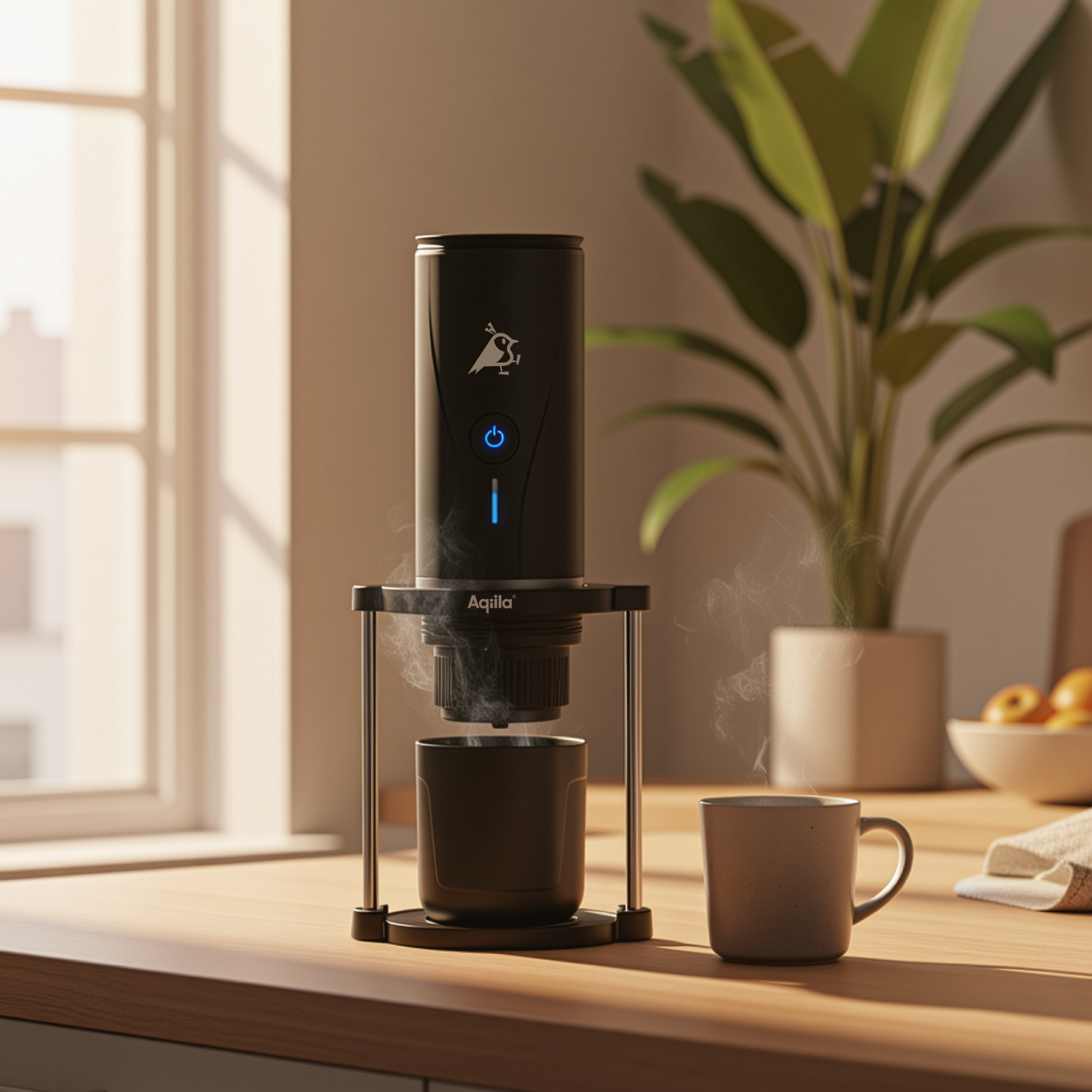 Let the Coffeebird take its place in your home. This sleek stand makes serving coffee effortless while adding a touch of elegance to your space. Together with the Coffeebird, it creates a mini-sized espresso station, no wall socket needed. Perfect for slow mornings when you don’t want to leave the kitchen table or brewing the coffee directly on the porch.