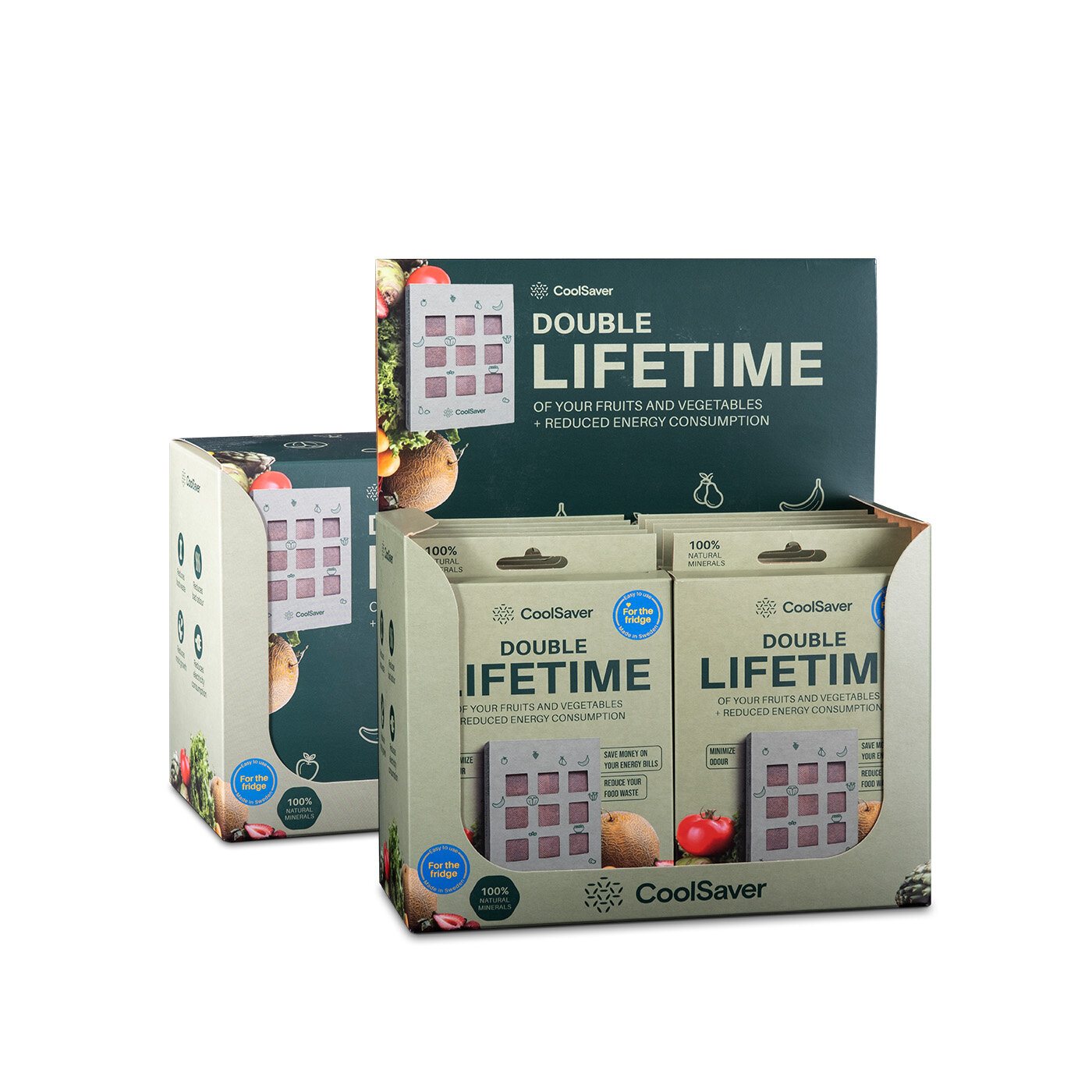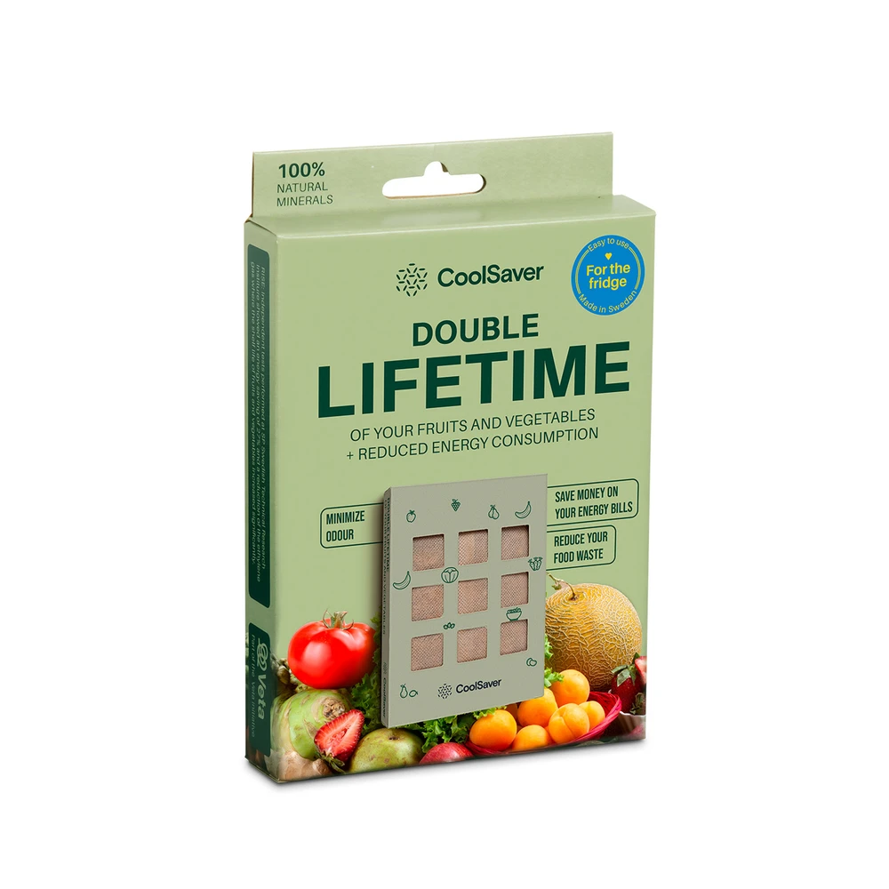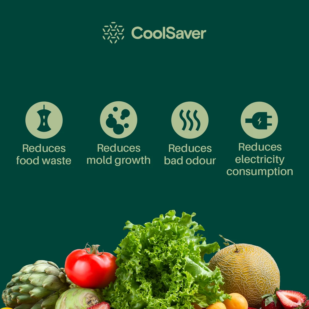 Med CoolSaver håller sig dina grönsaker fräscha längre genom en 100 % naturlig process. Zeolitmineralerna absorberar inte bara dålig lukt utan också etylengasen som dina grönsaker avger.